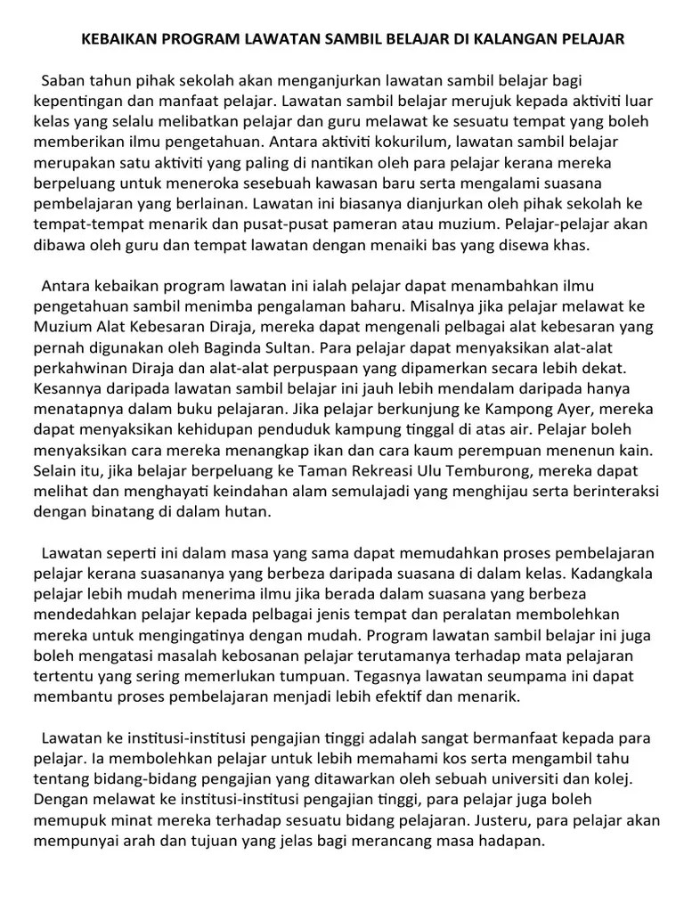 Jika kita seorang pelajar,kita akan lebih bersemangat untuk belajar . Aktiviti lawatan sambil belajar ialah aktiviti luar kelas yang .